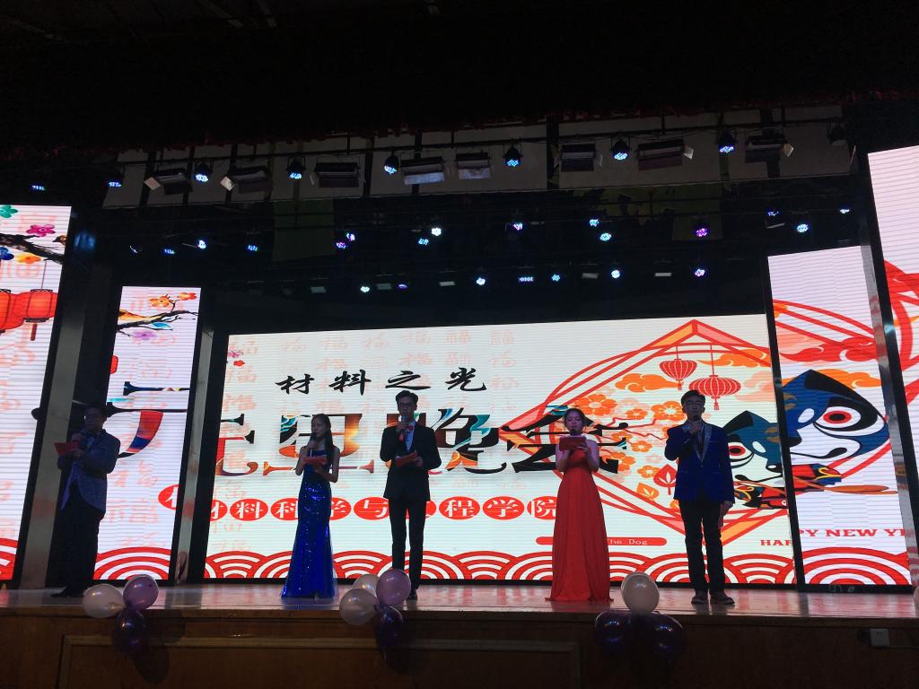 2017年12月27日晚,第八届“材料之光”科技文化节暨2018新年晚会在大学生活动中心演播厅隆重举行。6165cc金沙总站检测中心党委副书记秦梦,辅导员黄鹤、祝捷、张辉老师及2017届新生班主任代表顾绍金、刘学、叶德展、刘洪涛等老师应邀来到晚会现场,和全场材料学子共同分享了热情洋溢的视听盛宴。