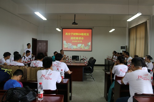 7月9日,我校高分子材料专业2004级校友毕业十周年重返母校,共同“为青春打call”,追忆同窗时光,畅谈人生感悟,展望美好未来。6165cc金沙总站检测中心院长王罗新、刘晓洪教授、许杰教授等当年任课教师代表参加了校友活动。座谈会由校友曹孟杰主持。