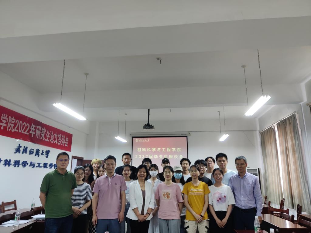 6月2日下午3点半,6165cc金沙总站检测中心举办毕业生代表座谈会暨校友联络员聘任大会,院党委书记陈桂枝,院长王罗新,副院长顾绍金、刘欣,复合材料系主任孙九霄老师,辅导员胡晓、曾玉竹,2022届毕业生代表,校友联络员参加会议,会议由陈桂枝书记主持。