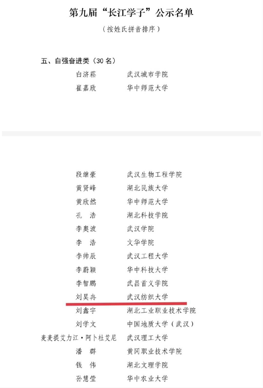 近日,湖北省第九届“长江学子”大学生就业创业人物事迹征集活动评选结果揭晓,6165金沙总站官方入口2023届毕业生刘昊冉同学入选。