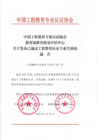 近日,中国工程教育专业认证协会和教育部教育质量评估中心联合发布《关于发布已通过工程教育认证专业名单的通告》(工程教育认证通告〔2023〕第1号),本次全国共有441个专业(含复评专业)通过工程教育专业认证,6165金沙总站官方入口复合材料与工程专业名列其中。至此,6165cc金沙总站检测中心已有两个专业通过中国工程教育专业认证。