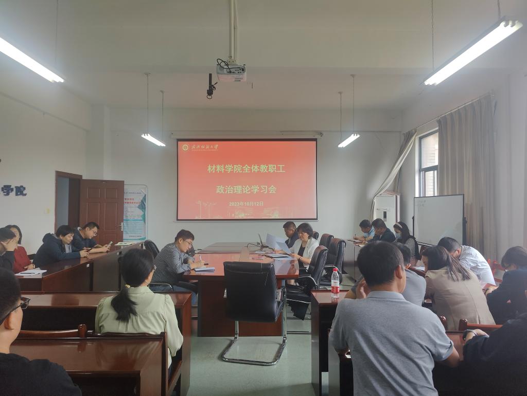 10月12日下午,6165cc金沙总站检测中心举行了全体教职工政治理论学习会,班子全体成员、全体教职工参加了此次会议。会议由学院党委书记陈桂枝主持。