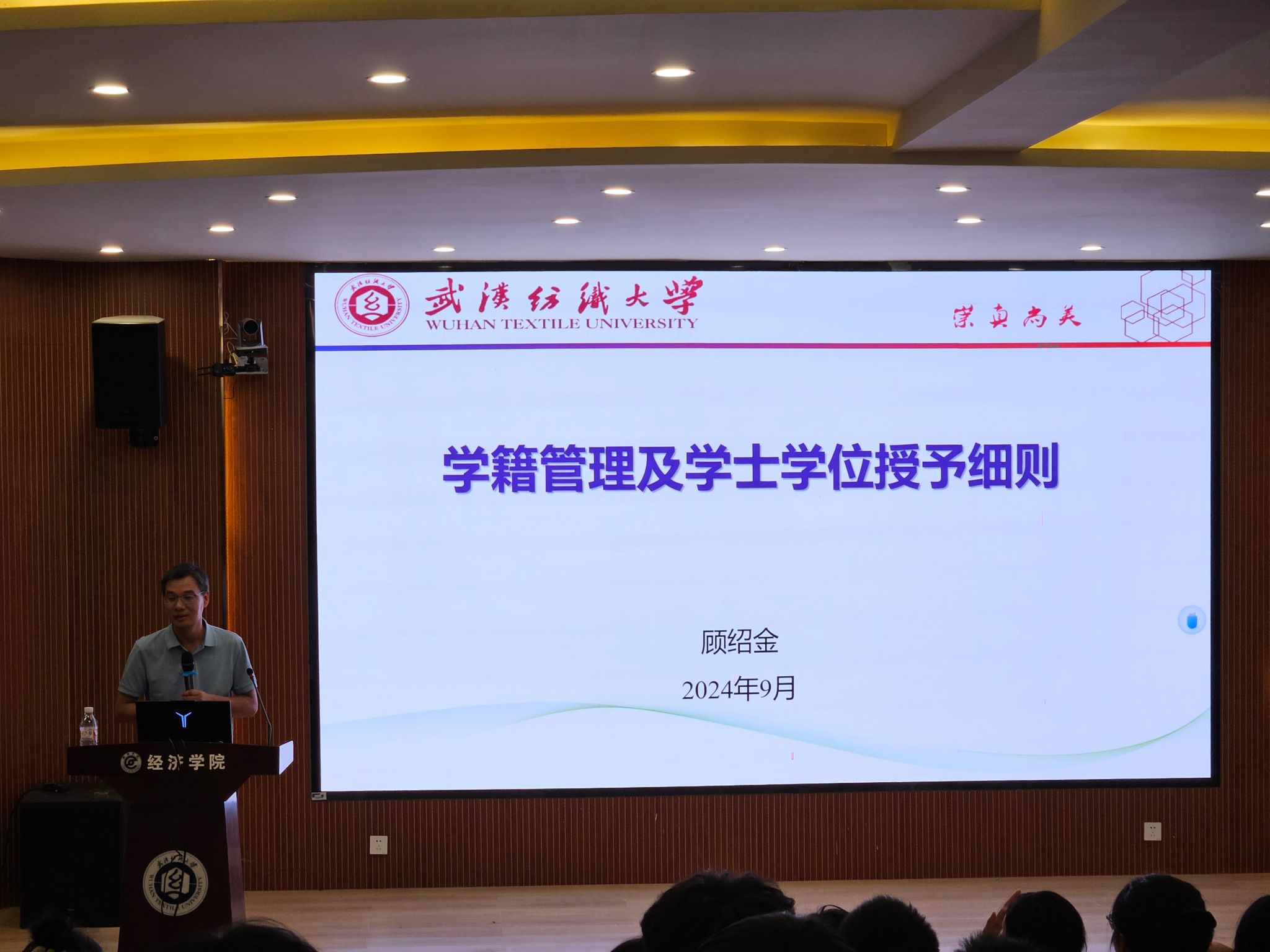 顾绍金为新生们详细解读了校学籍管理及学士学位授予细则,引导新生们提前了解专业培养方案,并就学籍管理和学位授予中一些常见问题与同学们进行交流,希望同学们共同努力营造良好的学习氛围。辅导员为新生们讲解了校纪校规及学生日常管理办法,并对同学们在学习生活纪律上提出了要求,引导同学们严格遵守学校管理规定。