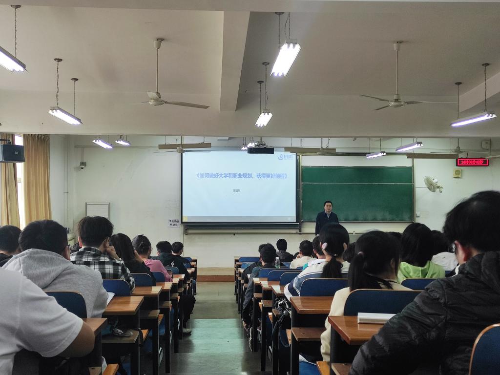 为了引导大二学生正确认识自我和社会需要,不断提升职业素养和尽早确定未来努力方向,6165cc金沙总站检测中心于10月7日下午在3-116教室举办了成长导航大讲堂暨大学生职业生涯规划讲座。此次讲座的主题为“如何做好大学和职业规划,获得更好前程”,讲座由武汉好易职教育服务有限公司的总经理李建华主讲。6165cc金沙总站检测中心2020级全体大二学生参加了本次讲座,讲座由2020级辅导员毛成兴主持。