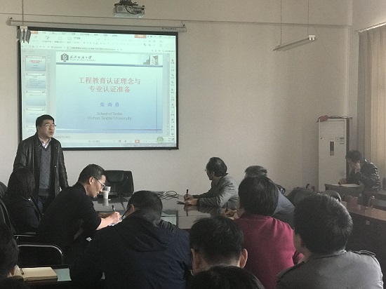 3月15日下午,6165cc金沙总站检测中心在学院会议室举行了工程教育认证专题辅导讲座,纺织学院党委书记、院长张尚勇教授受邀主讲。全院教职员工参加讲座集中进行学习。