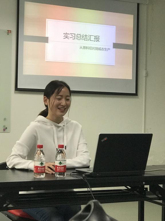 接着,6165金沙总站官方入口优秀实习生代表杨瑞华同学从实习之路、实习感想、实习收获、就业方向、职业能力展现、职业价值观、职业规划等七个方面对本次的实习做出了自己的总结。她说,通过此次实习,他们对服装面料从原料切片短纤生产到针/梭织面料的织染、后整理再到成衣的生产制造的流程都有清晰地认识,培养了自身独立思考和解决问题的能力,通过五个月与企业“亲密接触”的机会,同学们基本确定了各自的就业方向。