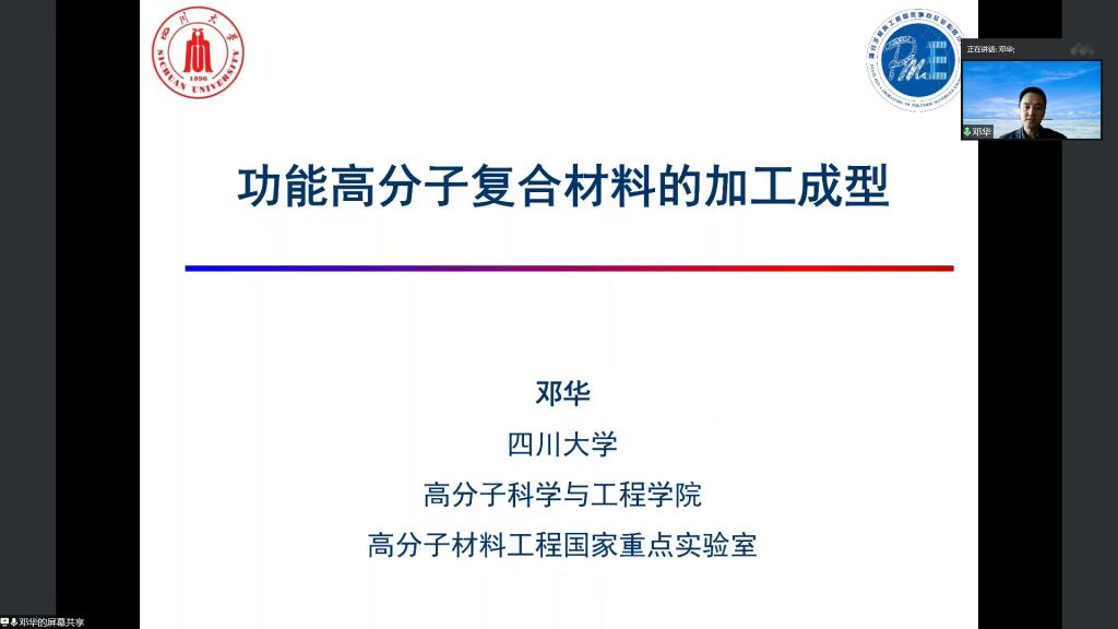 邓华教授详细地介绍了功能高分子复合材料具有高强度、质轻、耐温、耐腐蚀、绝热、绝缘等性质,能广泛应用于航空航天,汽车,人工智能,高速列车等领域。详细的分析了粒子在聚合物中分散和分布、粒子网络形貌、粒子与聚合物之间的界面相互作用对高分子复合材料的性能影响。特别是树枝状胶体粒子这种新的粒子分散方法在功能高分子材料领域应用给大家留下来深刻的印象,开发一种填料表面修饰/聚合物基体不再包覆填料表面的新工艺,解决了填料之间直接搭接问题,有助于功能高分子导热,导电,能够应用于湿气发电材料的开发。最后,邓华教授为我们总结了功能高分子材料的加工方法。