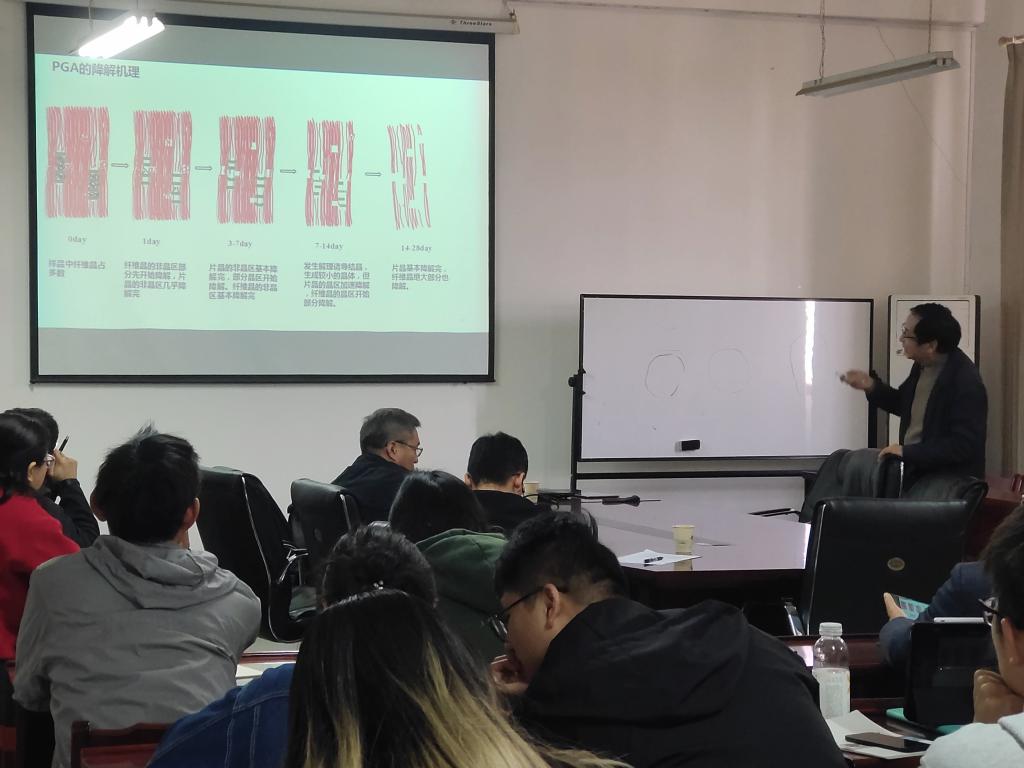 黄庆教授及其团队以独特的研发视角,致力于性能优良的可吸收医用产品,重点研究了特殊功能的可吸收医用产品的优异性能(如降解性),揭示其降解性能的对应机理,并致力于PGA纤维结晶结构在降解过程中的变化、晶胞参数以及可吸收缝合线工艺流程的研究和分析。通过提出有针对性的问题并进行解答,完成了整场报告。黄庆教授及其团队的工作为发展我国在医用材料等领域的可降解、可吸收的生物医用材料的表面设计和制备提供理论依据和技术支撑,以便进一步提高生物医用领域工艺流程设计中基础问题的创新能力和水平。