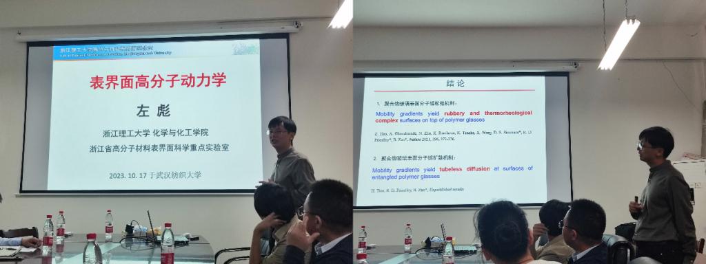 左彪教授着重报告了固体高分子表面分子链的弛豫与扩散对材料的粘结、润滑、摩擦、磨损和自愈合等界面行为的影响。非晶高分子固体表面分子的运动能力明显增强,同时存在类液态表面层。这重新定义了高分子材料界面行为的基本认识,为高分子研究提供新视角。然而,表面分子环境的特殊性使得分子运动的表征变得困难,表面高分子链的运动规律和机制尚不清楚。这些成果有望促进对高分子材料界面行为分子机制的深入理解。
