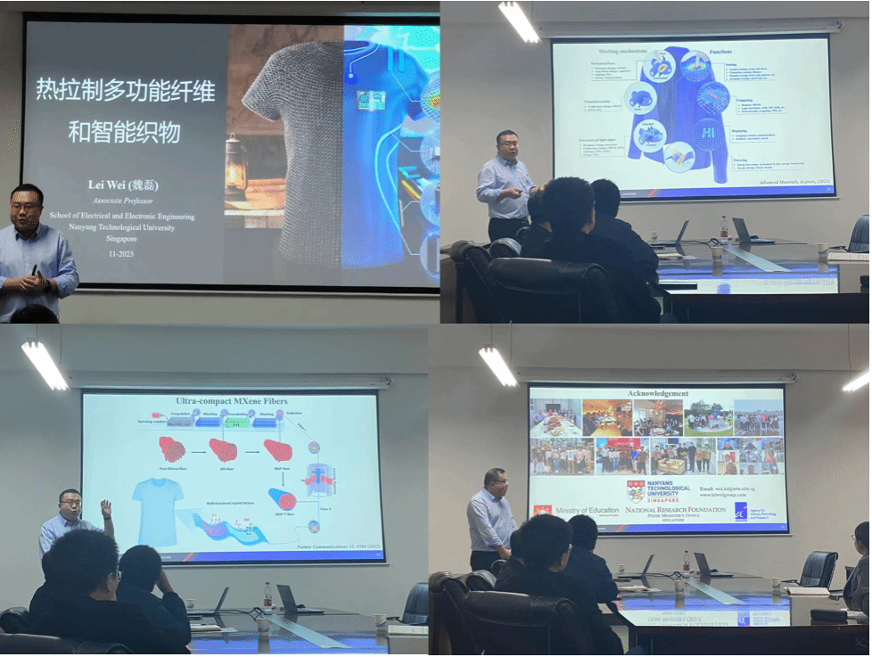 11月24日,6165cc金沙总站检测中心及纺织新材料与先进加工技术国家重点实验室联合举办了武汉纺织大学阳光学术论坛。本次论坛特邀报告人魏磊教授,新加坡南洋理工大学副教授,以“热拉制多功能纤维和智能织物”为题进行学术分享,报告于11月24日上午10:00在6165cc金沙总站检测中心8F-506举行。