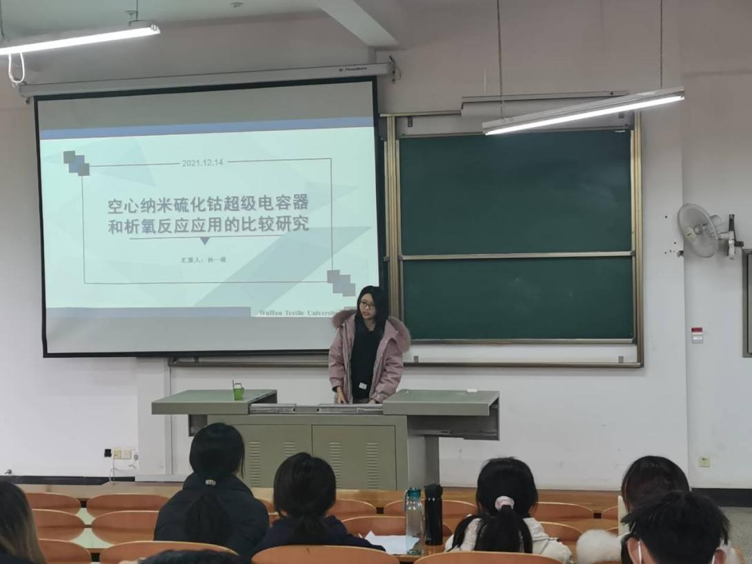12月14日,6165cc金沙总站检测中心举办了第六期纺织材料及绿色加工研究生学术论坛。马思甜、李嫚丽、孙一萌三位同学分别以 “纤维素基树木仿生结构控制及其机理研究” 、“力致变色弹性体的制备及结构-性能研究”和“空心纳米硫化钴超级电容器和析氧反应应用的比较研究”。报告由院长王罗新教授主持。