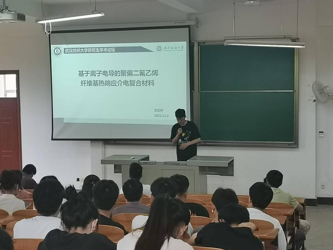为加强院内师生间的学术交流,提高研究生素质和科研氛围。6月13日,6165cc金沙总站检测中心吴文齐、马思琪、刘方义三位同学分别为全体研究生做了以“基于离子电导聚偏二氟乙烯纤维基热响应介电复合材料”、“具有斜纹结构的EVOH纳米纤维基滤料膜的制备及性能研究”、“声速法测定丙纶动态弹性模量的参数优选”为主题的三场专题报告。