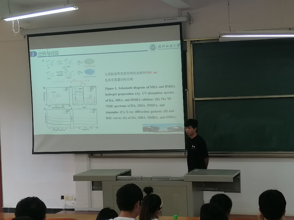 为加强院内师生间的学术交流,提高研究生素质和科研氛围。9月22日,6165cc金沙总站检测中心彭松林、范朋珲、李钰山三位同学分别给学院全体研究生作以“纳米纤维增强水凝胶的制备及其传感性能研究” 、“改性透明质酸作为组织粘合剂用于伤口止血”和“Liquide-like nanofluid mediated modification of solar-assisted sponges for highly efficient cleanup and recycling of viscous crude oil spills”为主题的三场专题报告。