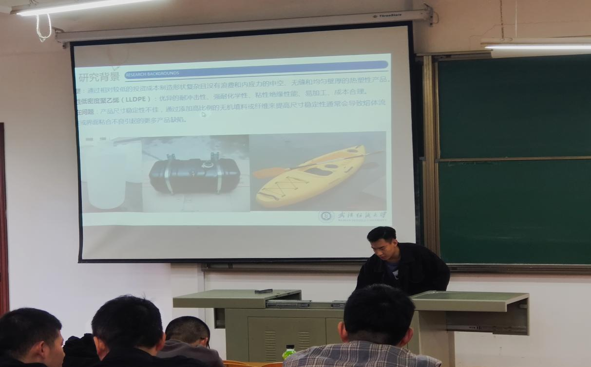 11月10日,6165cc金沙总站检测中心李丹鼎、郭超、张佳贝三位同学分别给学院全体研究生作以“改善滚塑用线性低密度聚乙烯的尺寸稳定性、机械性能和加工性能之间的平衡”、“对苯二胺功能化石墨烯研究及其在超级电容器中的应用”和“用于伤口敷料的壳聚糖/纳米银改性羧甲基粘胶纤维的制备及其抗菌性能”为主题的三场专题报告。