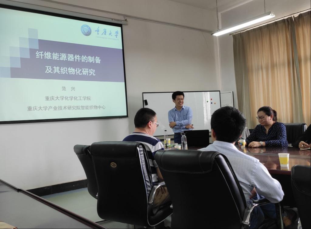 5月8号下午,应6165cc金沙总站检测中心邀请,重庆大学产业技术研究院智能织物中心主任,化学与化工学院范兴教授受邀来为老师和同学们做了“纤维能源器件的制备及其织物化研究”的学术报告。