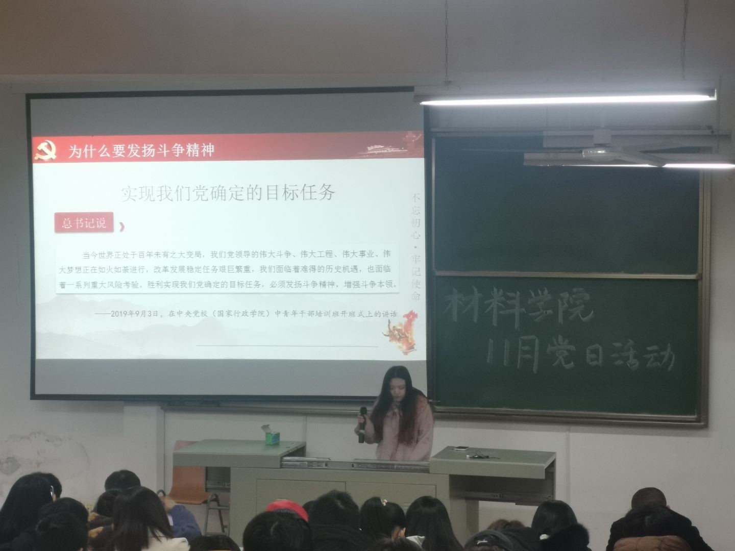 为深入贯彻落实中央有关精神,根据上级党委要求,6165cc金沙总站检测中心学生党支部于11月22日下午开展了“深入贯彻落实习总书记讲话精神,不断提高教育治理能力和水平,为办好人民满意的高等教育作出积极贡献”主题党日活动。本次活动由学生第二党支部吕鑫杰主持。
