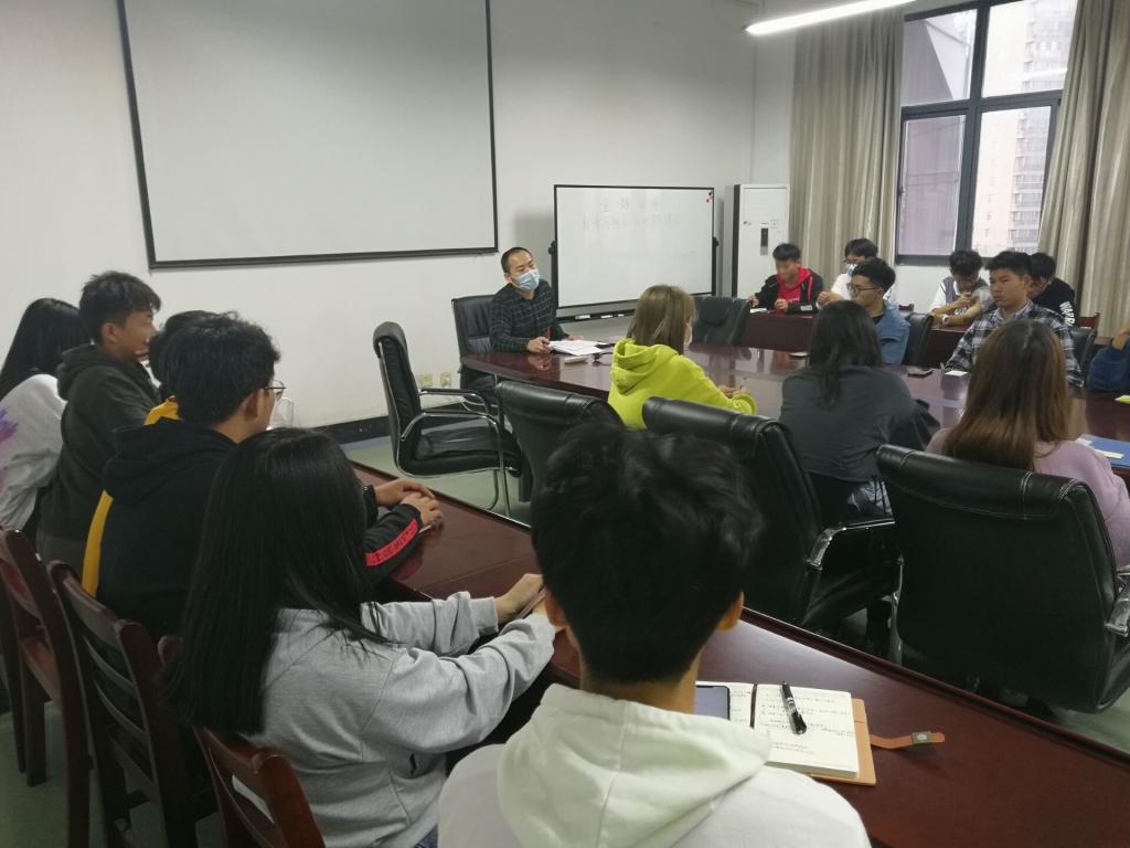 11月14日下午,6165cc金沙总站检测中心辅导员毛成兴在8F-506给大一班委上团课,团课主题为“疫情防控”和“班风学风建设”。20级所有班委听取了本次团课。