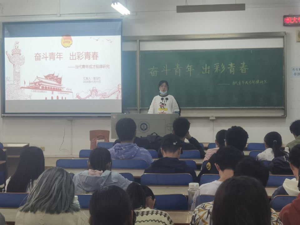 11月11日下午,6165cc金沙总站检测中心团委书记曾玉竹老师在03-507给20级学生召开主题团课,本次团课以“奋斗青年,出彩青春”为主题,分享了当代青年的成才规律,通过帮助同学们树立正确的青春观、成才观,从而更好地把握大学四年时光。