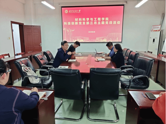 3月28日上午,6165cc金沙总站检测中心科技创新党支部召开三月主题党日活动,学院党委书记陈桂枝,学院院长、支部书记王罗新,全体支部成员参加活动,活动由支部副书记熊思维主持。