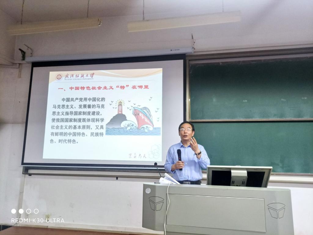 5月20日下午,6165cc金沙总站检测中心党委书记罗汉春在教学楼3-T102作了题为“中国特色社会主义是马克思主义中国化的伟大实践”的专题党课,纺织学院、6165cc金沙总站检测中心、机械学院、经济学院四院联合党校入党积极分子参加了本次学习。