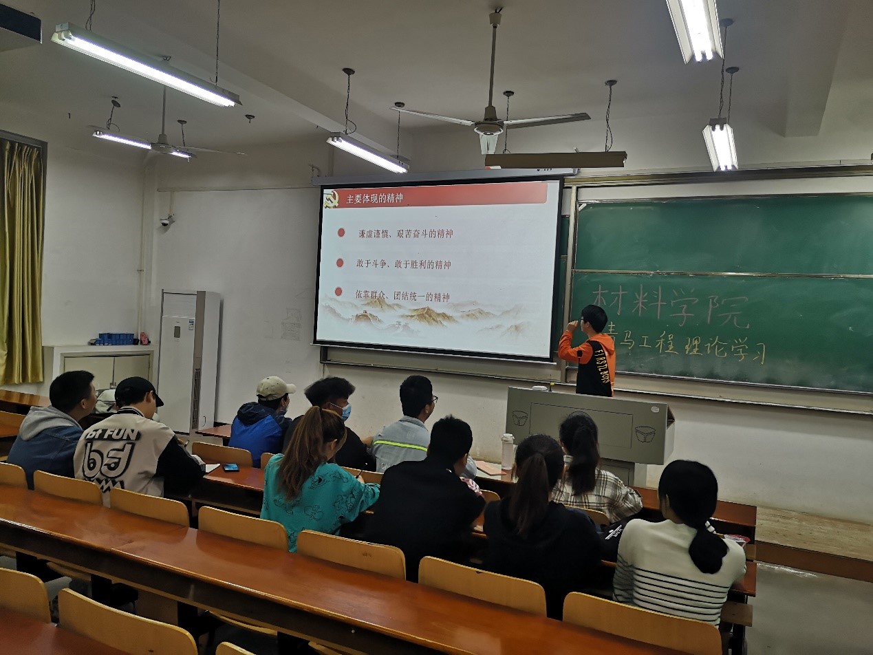 活动从红色革命精神这个大主题引入,分别由胡义龙、裴凌威、杨珩、刘从杨、姜鑫、张枭和张力凡七名同志向大家分享了红船精神、长征精神、延安精神、沂蒙精神、苏区精神、井冈山精神和西柏坡精神。一个个生动的红色经典故事,传递出丰富的精神内涵,让从未经历过残酷战争的同学们了解在战火纷飞的革命战争年代,革命先辈们用流血牺牲铸造成的红色革命精神。