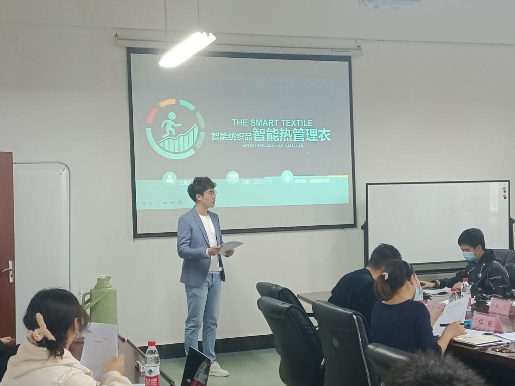 2021年9月,邱俚涵同学和其负责的项目正式组队申请参加武汉纺织大学创新创业学院,在曾玉竹老师的指导下经过多轮筛选、改进后于11月成功入驻创新创业孵化器,将实验室技术结合以市场,推出符合大众所需的“智能纺织品——只能热管理衣”系列产品。